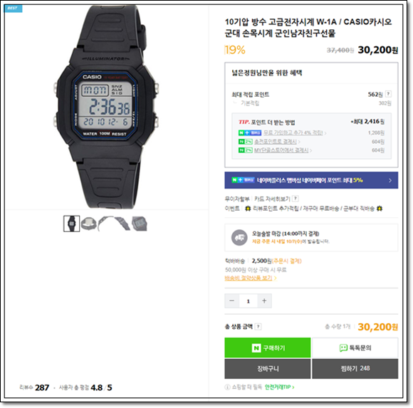1. 10기압 방수 고급전자시계 W-1A !