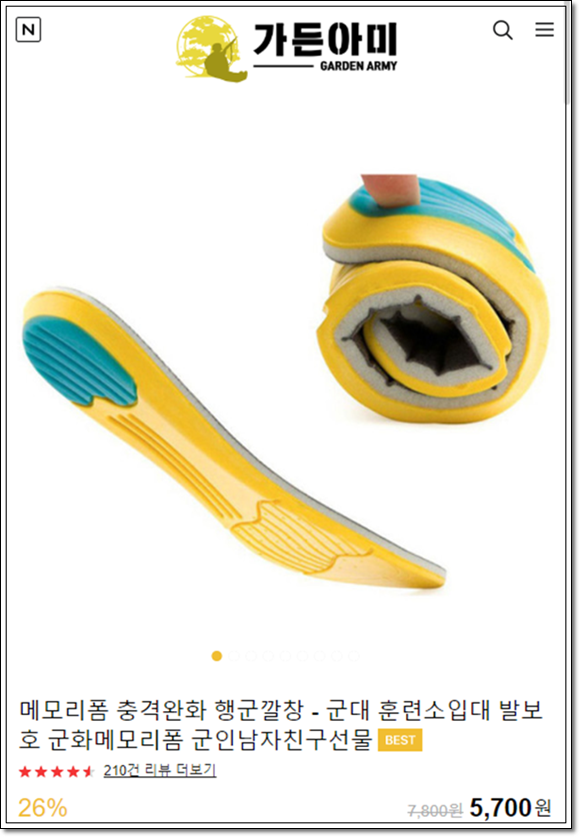 가든아미 메모리폼 충격완화 행군깔창입니다@! 마찬가지로 재구매율도 높은 상품입니다@!