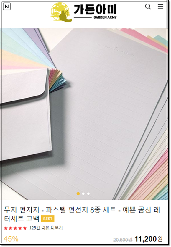 5위는 파스텔 편선지 8종 세트 입니다! 충분한 양과 심플한 디자인 그리고,