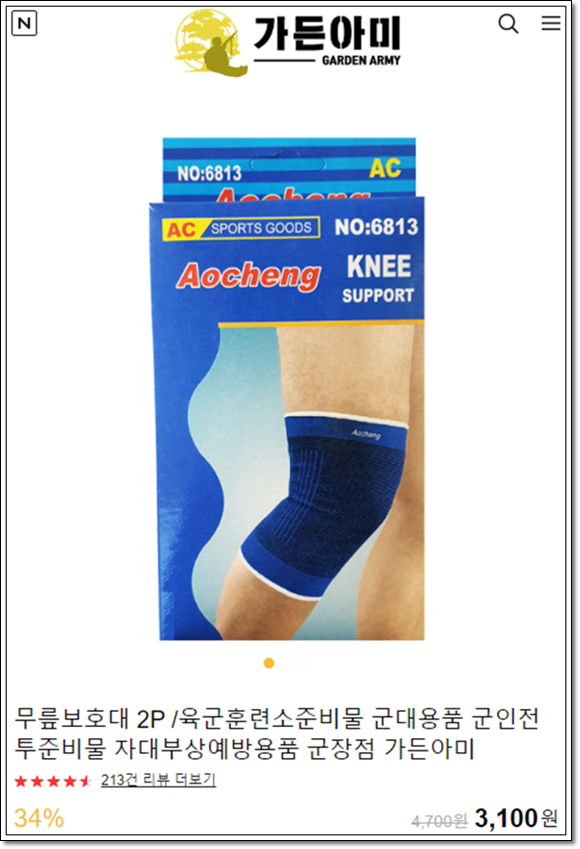 무릎을 지켜주는 군대 무릎보호대가 바로 4위!