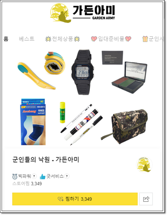 가든아미에서 가장 인기많은 카테고리는 바로 입대준비물