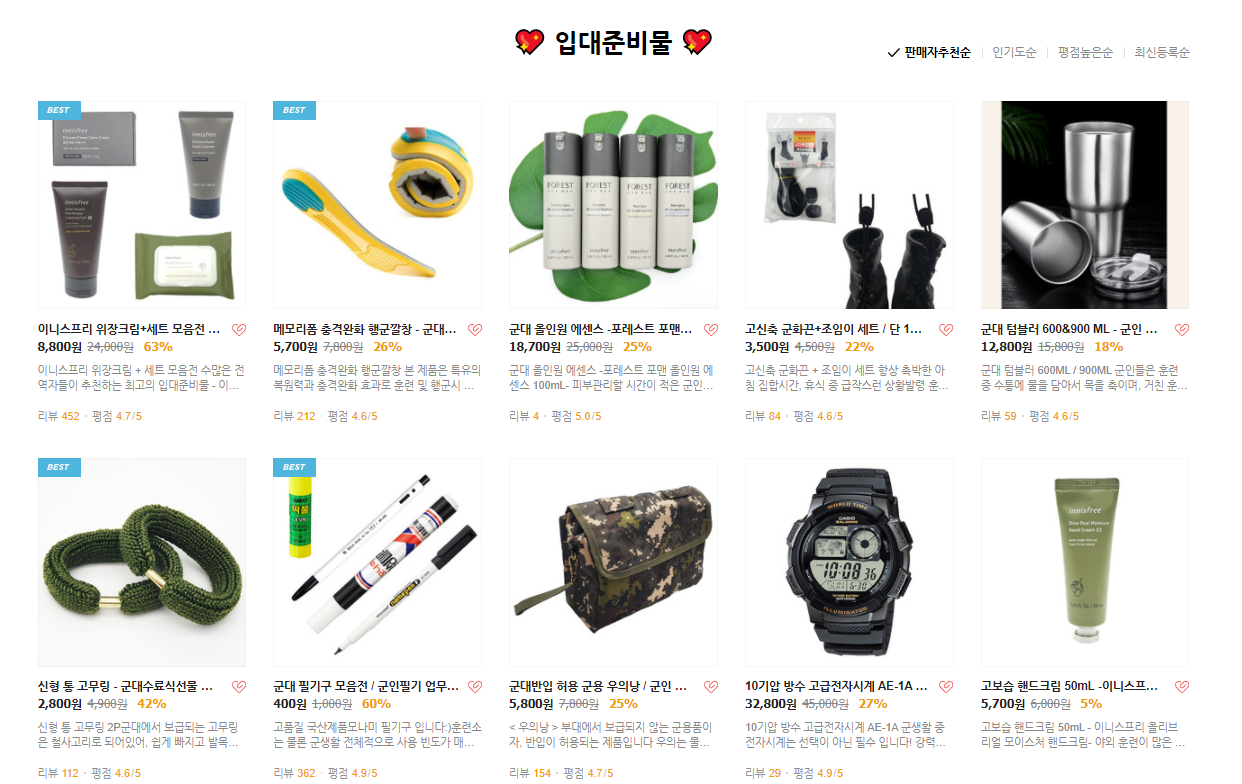 또한 많은 분들이 후기로 훈련소때 잘 사용했다고 리뷰를 납겨주시고 있습니다