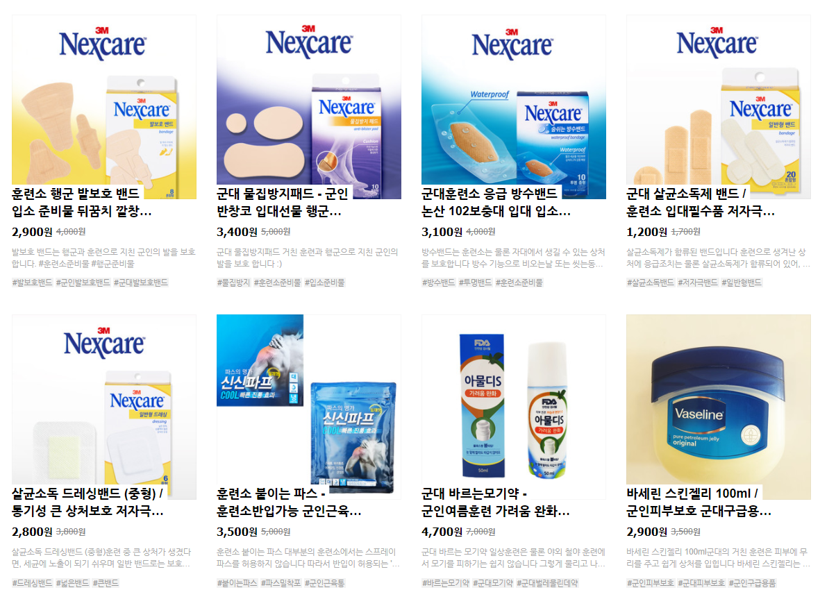 안녕하세요 군대 논산 훈련소 입소준비물을 다량 전시하고 있는 쇼핑몰