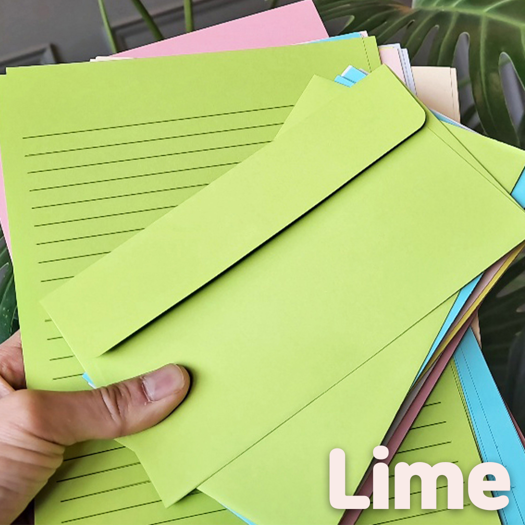 8종류의 다양한 색상의 편지지 그리고 편지봉투가