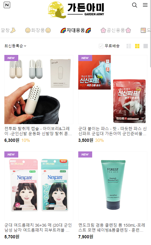 또는 많이들 이용하시는게 군대용품 쇼핑몰 가든아미의 군부대 우체국택배 직배송 서비스가 아닐까 합니다. 군부대에서는 훈련 일정이 잡혀있고, 훈련이 다가오면서 그러한 군인분들의 친척이나 남자친구, 어머니께서 보호대나, 핫팩, 여분의 양말, 보조배터리 등등 군인선물을 직배송해서 보내는 경우가 많은 것 같습니다.