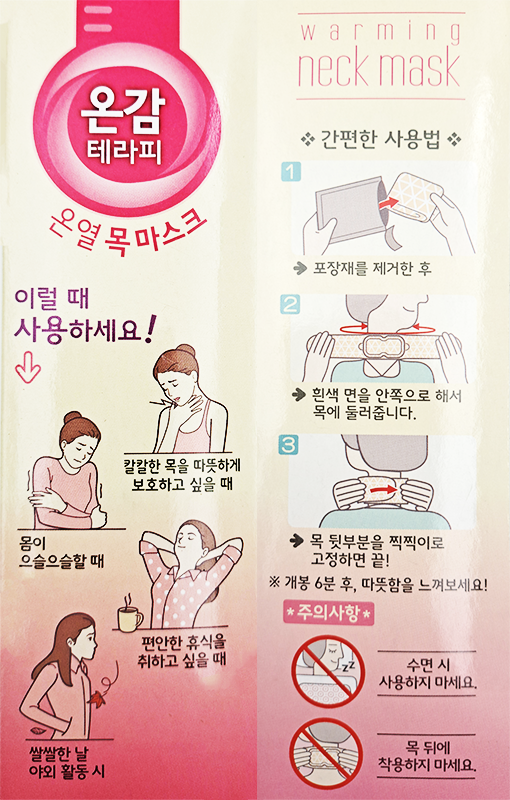 요즘같은 쌀쌀하고 추운 날씨에는, 목 온찜질팩을 사용한다음 목도리를 매고서