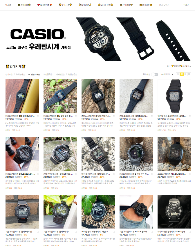 고강도 내구성, 카시오 우레탄시계 기획전을 운영하고 있습니다!