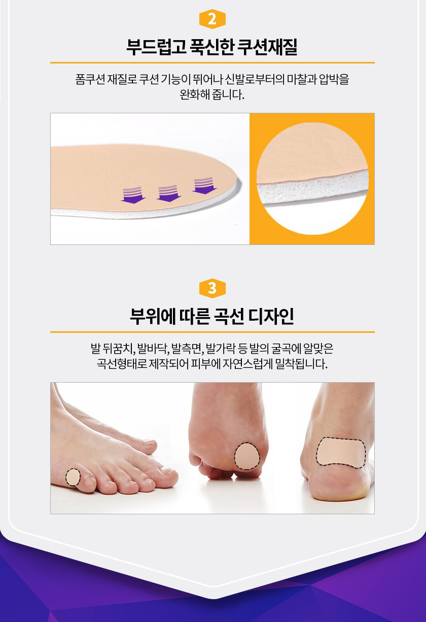 행군 전에 미리 붙여서 사용해주시면 물집 방지를 할 수 있는데요 부드럽고 푹신한 쿠션 재질로 신발 마찰로 인한 상처를 예방할 수 있게 도와줍니다