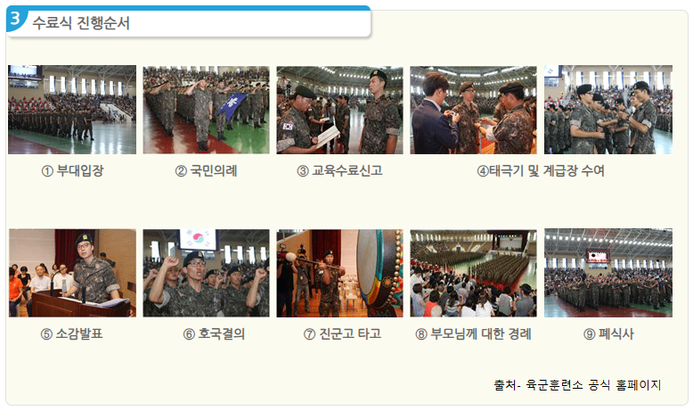 다음은 논산 훈련소 수료식이 진행되는 순서에 대해 알려드리겠습니다!