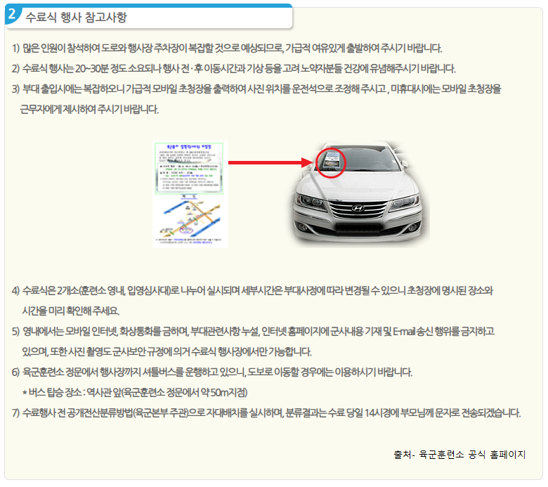 그리고 논산훈련소 입장은 오전 8시 30분에 출입이 가능한데 이때 차량 우측 전면에 초청장을 붙여서 입장해주시면 됩니다 :)