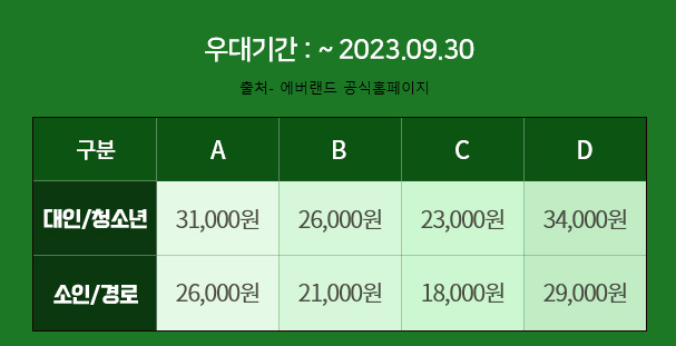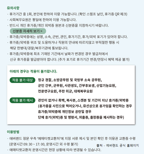 다음은 에버랜드 군인할인 혜택입니다!