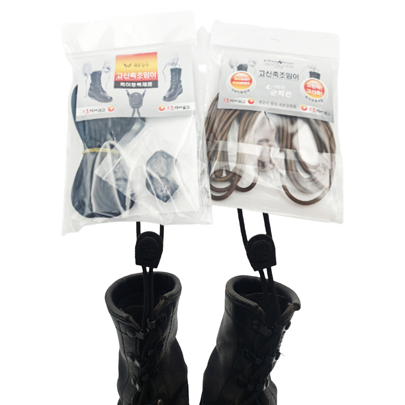 군대에서는 시간이 촉박하게 흘러가기 마련인데 그럴 때마다 군화끈 묶는데 시간이 걸리셨던 분을 위해 만들어진 제품으로 군화끈 묶는 시간을 단축시켜주며 조금 더 편리하게 군화끈을 묶을 수 있도록 도움을 줍니다!