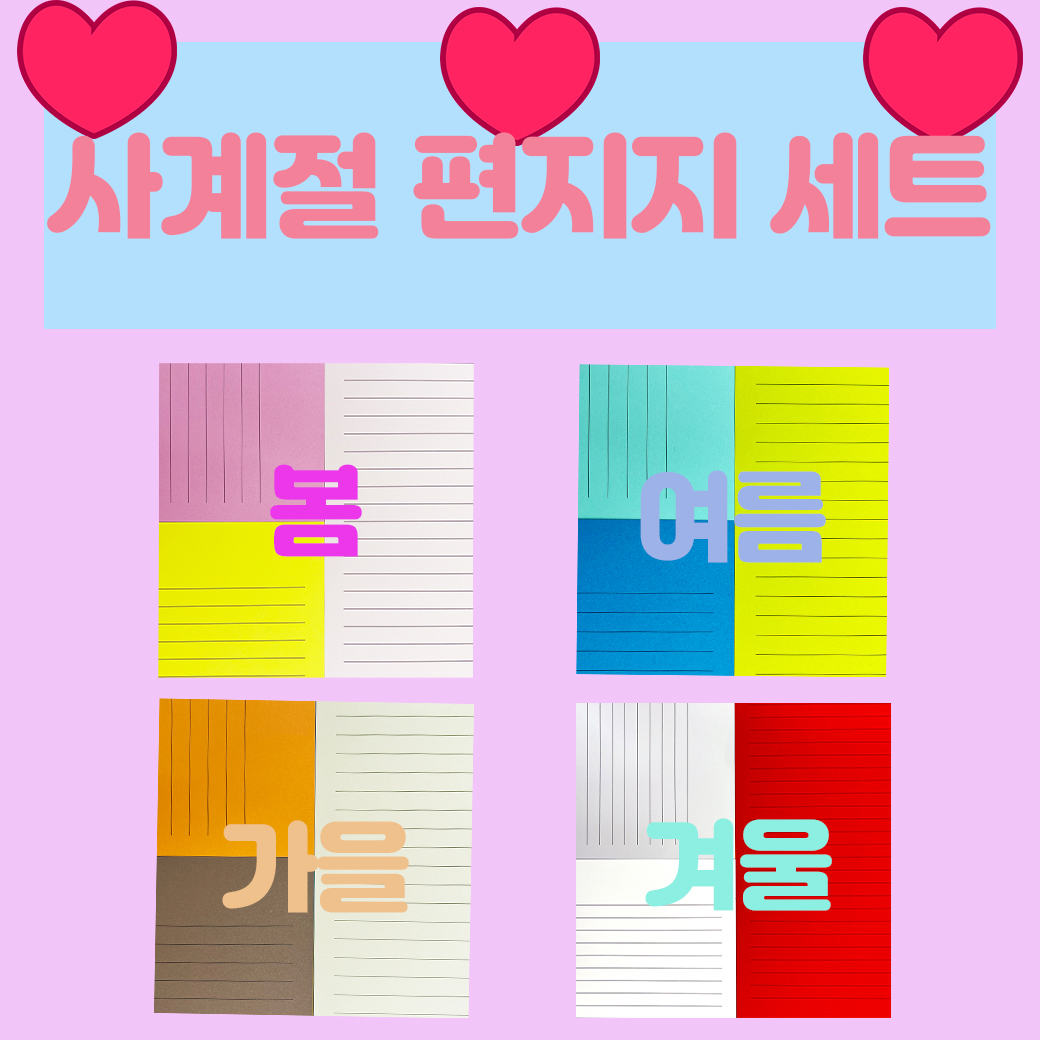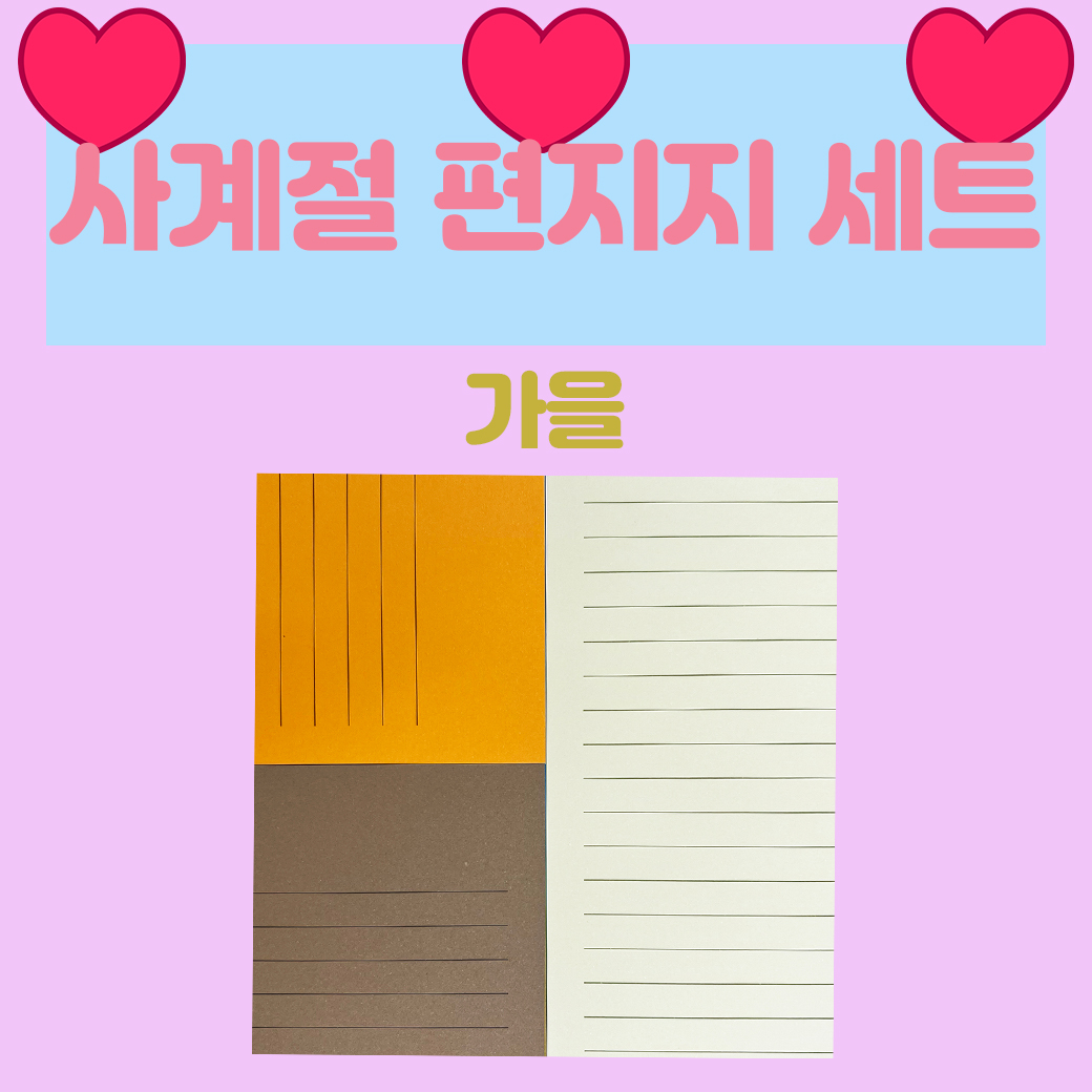 소중한 사람이나 사랑하는 사람에게 사계절의 추억이 담긴 색감의 편지지로 손편지를 써주면 그 사람과의 관계 발전에 도움을 줄 수 있을 것 같다는 생각이 드는데요