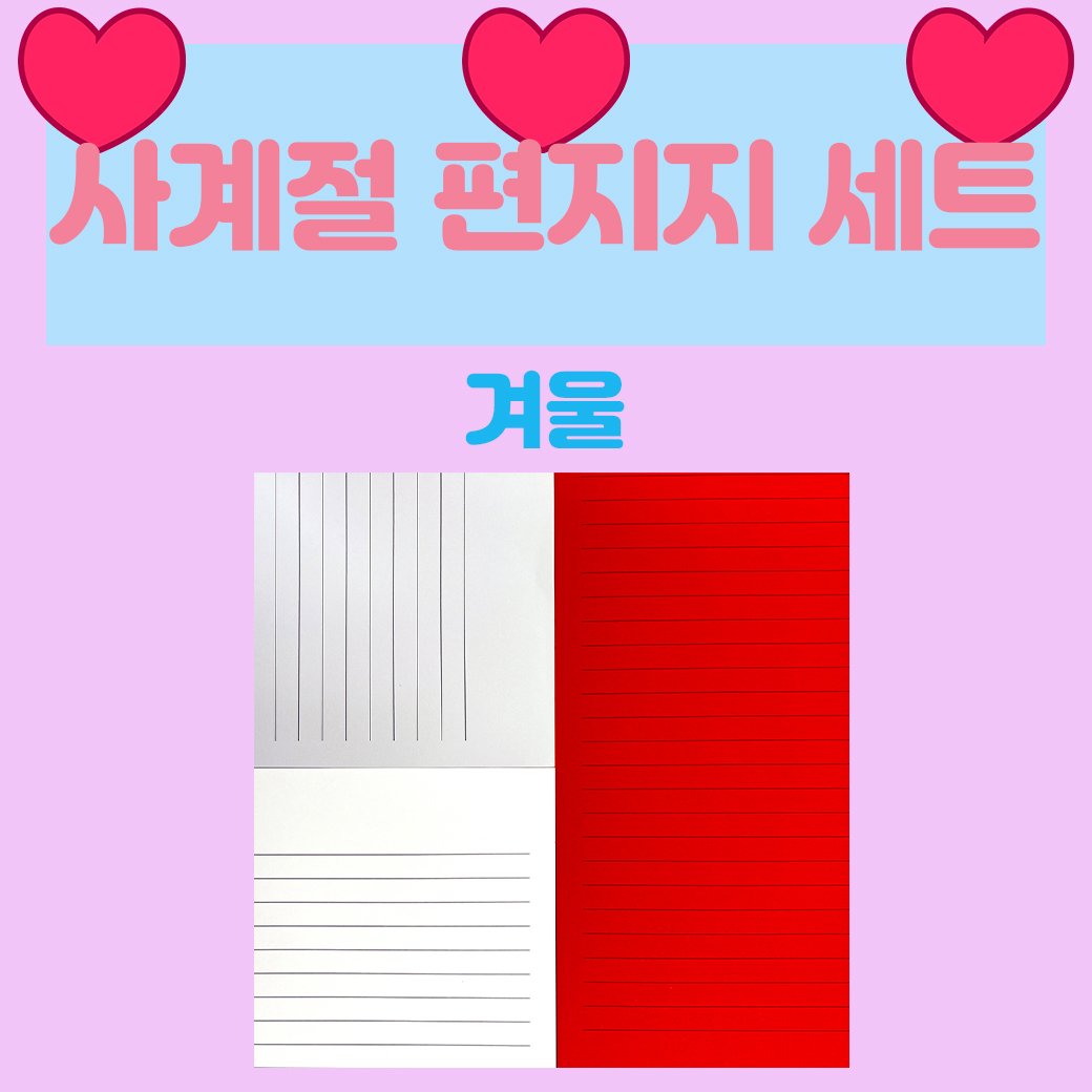 또, 1년 365일 사계절 동안 넉넉하게 사용하실 수 있게 충분한 양의 편지지와 편지지 봉투로 구성이 되어 있어 사계절 동안의 추억을 기록하며 마음을 전할 수 있지 않을까요??